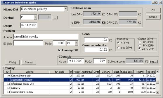 A.1.4.1 Vstupní formulář pro knihu drobného majetku