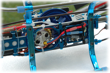 Není toho mnoho. Ze zkušeností jiných modelářů, kterým praskal spodní díl rámu při tvrdším dosednutí jsem zakoupil duralový rám. Zatím jsem jeho vlastnosti neštěstí nevyužil. Původní černé držáky podvozkových lyžin jsem zaměnil za stříbro-modré v barvě eloxovaných kovových dílů.